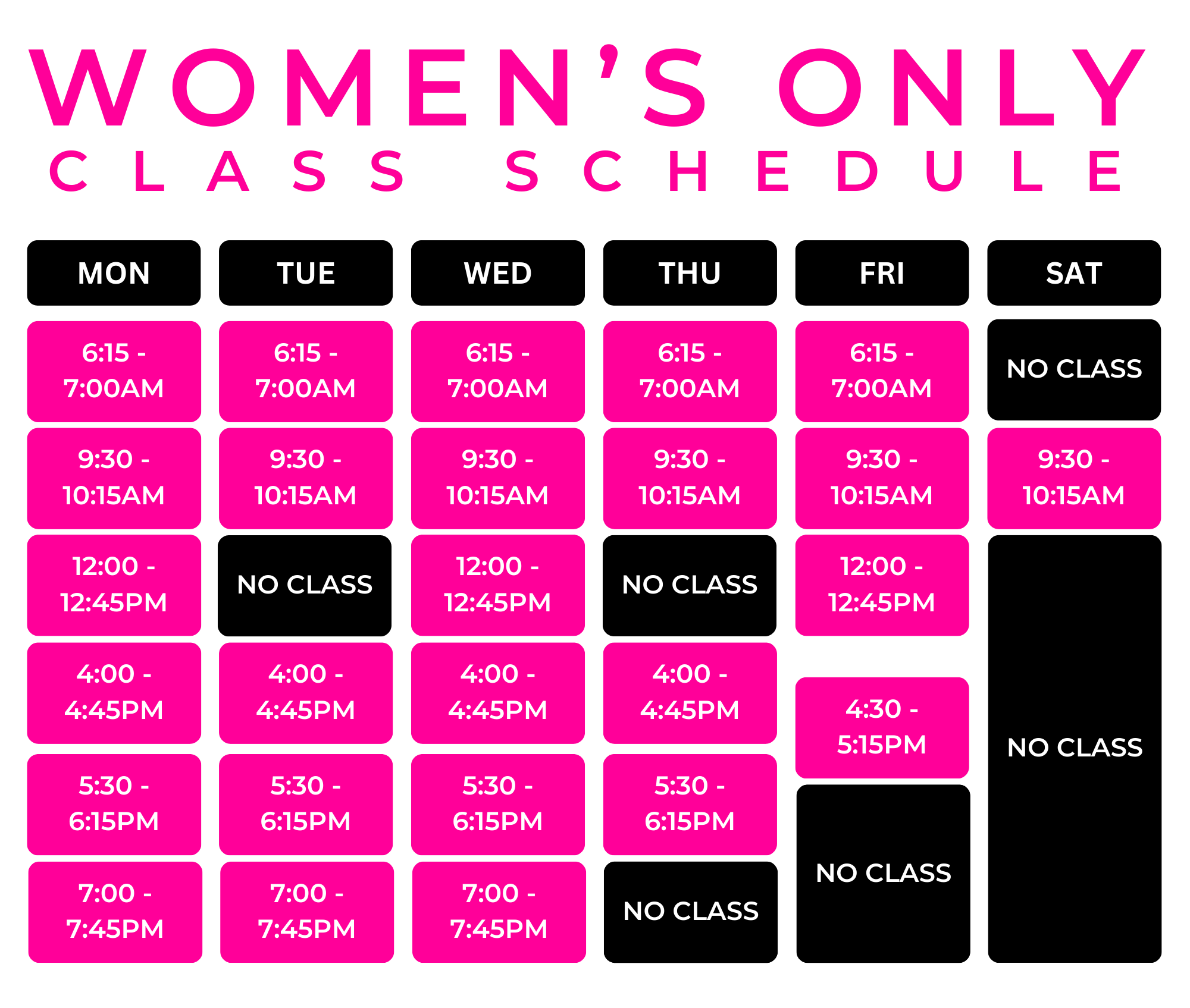 Unlimited access to our scheduled women’s-only classes in a private, dedicated space. Ideal for women who want flexibility and ongoing progress.